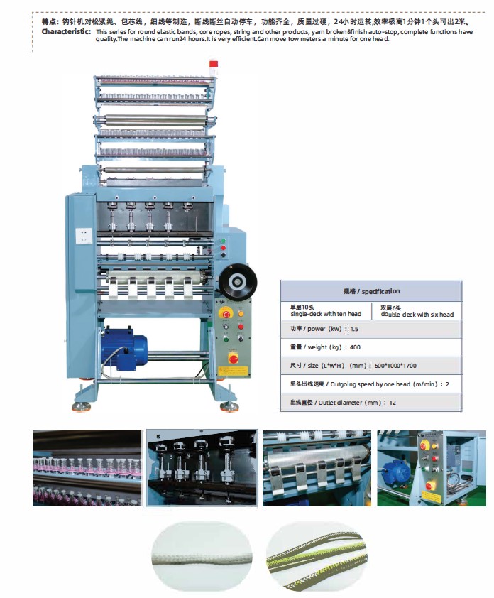 This series for round elastic bands, core ropes, string and other products, yarn broken finish auto-stop, complete functions have quality.